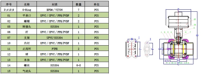 UPVC气动双由令球阀